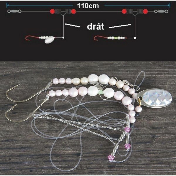 Tento systém je určený pro daleké hody a je vybaven držáky háčků a nárazovým štítem. Háčky tak zůstávají u hl. návazcového vlasce a nehrozí tak zamotání. Systém je vybaven několika bílými korálky a třpytkou. Je neodolatelný pro všechny druhy platýsů.110cm1/00,50mm53010020 przeczytaj całość