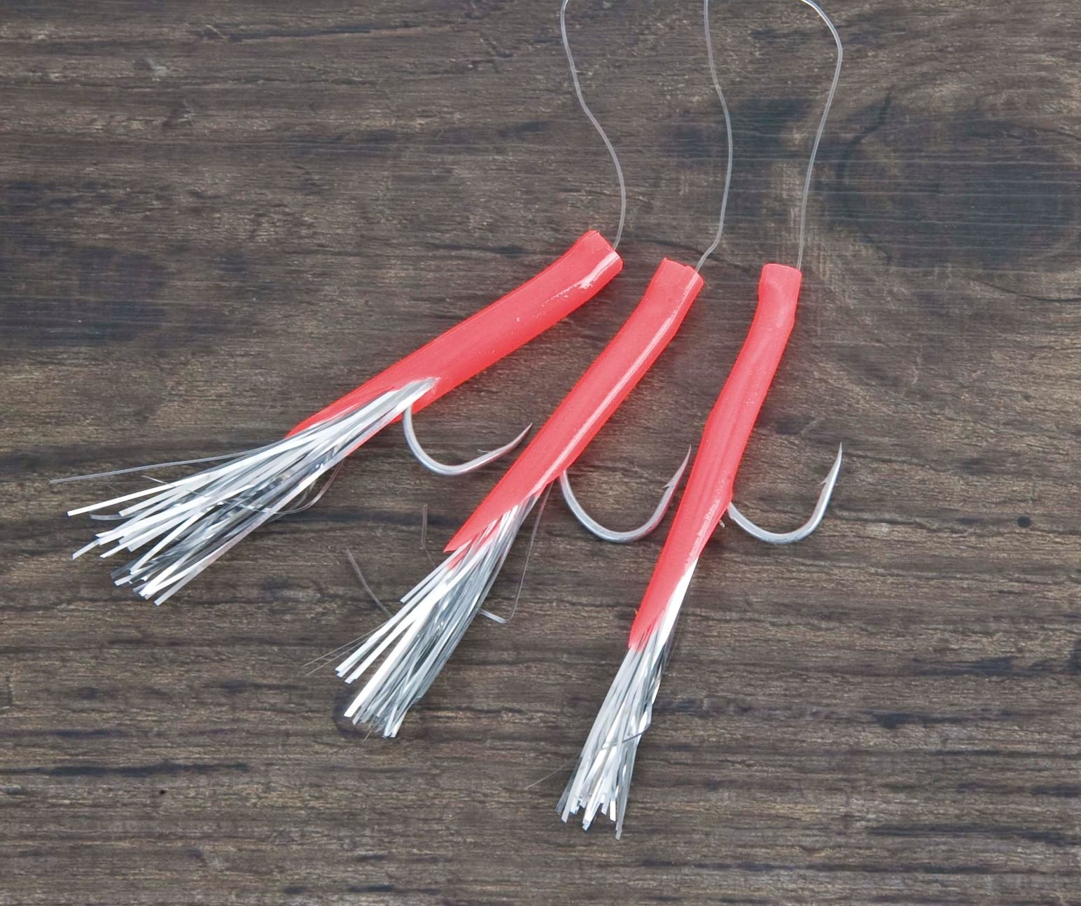 Systém pro velké tresky obecné a tresky tmavé, se třemi ocelovými háčky, červenými bužírkami a tsříbrnými střapci. Zajistí vám úlovek i ve chvílích, kdy všechny ostatní nástrahy ryby ignorují.  140cm 6/0 0,70mm   przeczytaj całość
