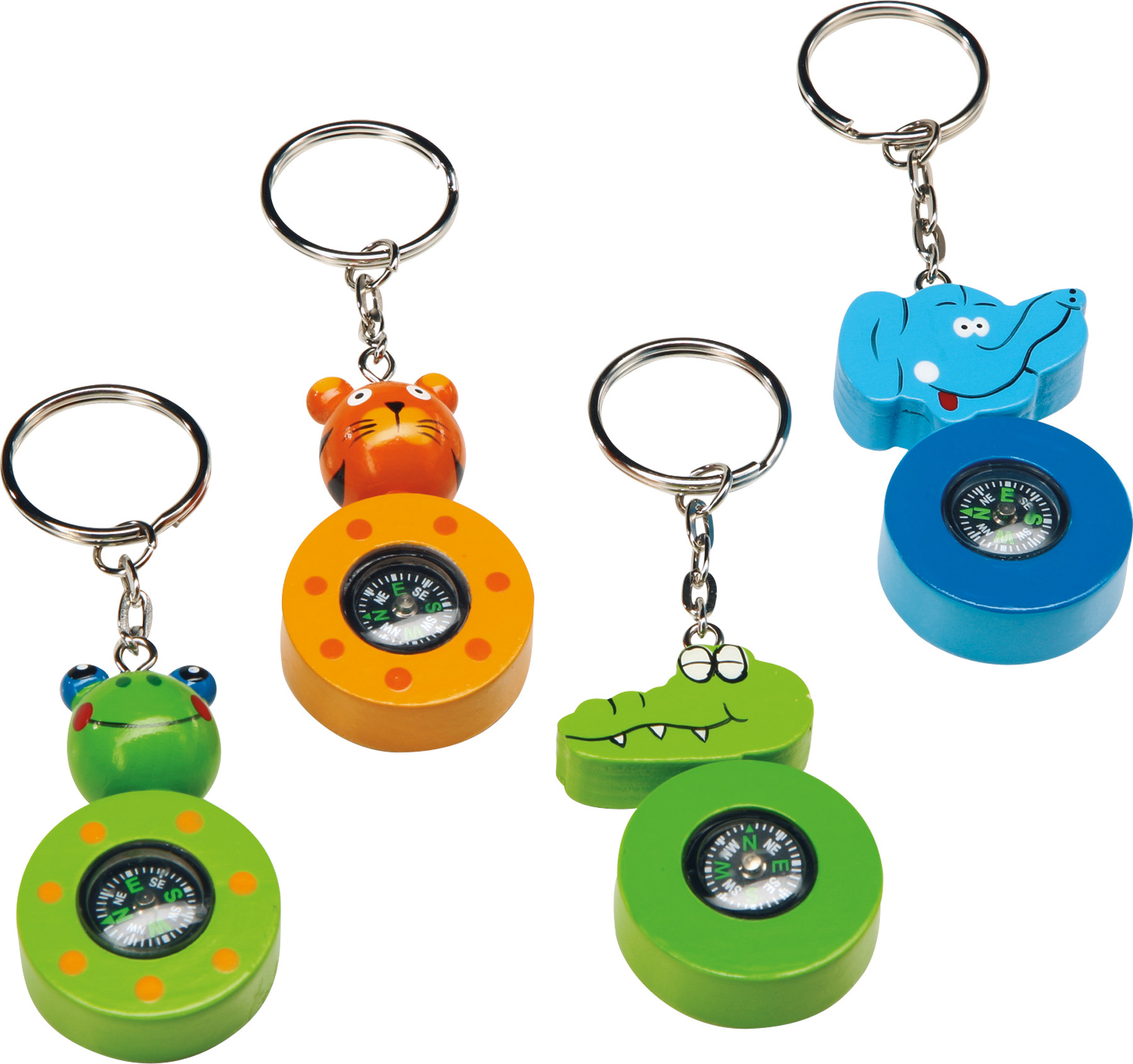 Dřevěný přívěšek na klíče - Kompas 1 ks Barevně lakované roztomilé dřevěné zvířátka s kompasem na závěsném řetízku udrží klíče pohromadě! Německá firma przeczytaj całość