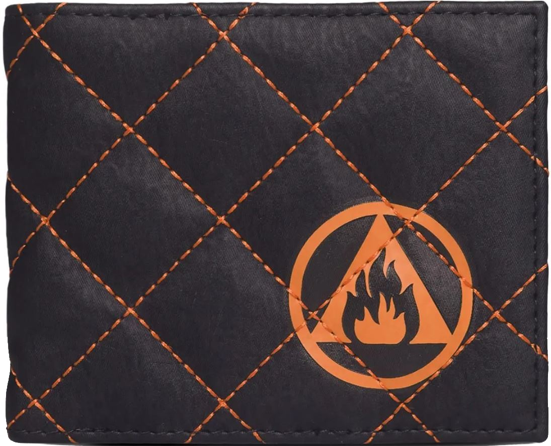 Atraktivní černá otevírací peněženka s oranžovýmí detaily a motivem Far Cry.