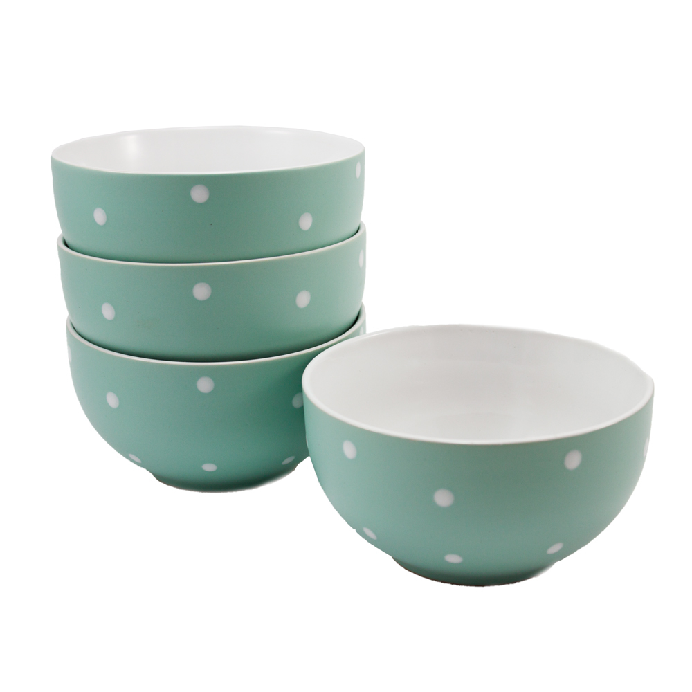 Zelená miska s puntíky z kameniny. przeczytaj całość