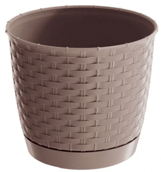 Květináč 250 mm mocca RATOLLA ROUND imitace pleteného ratanu