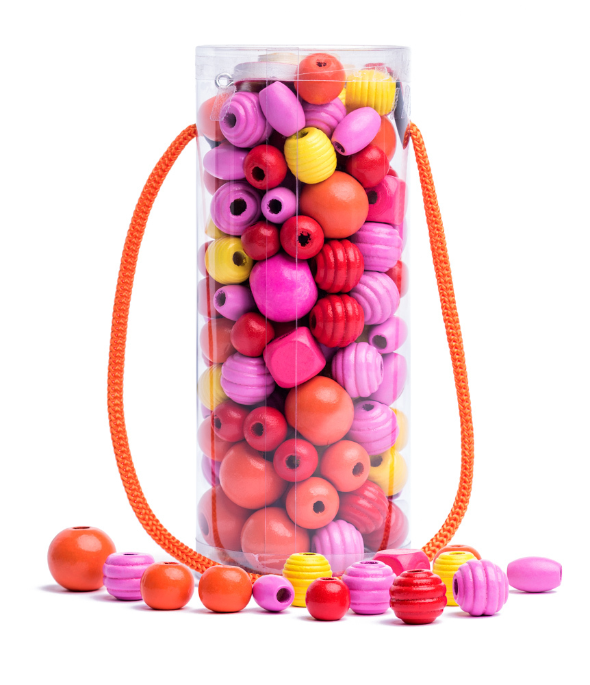 Tuba obsahuje velké množství klasických i soustružených korálků, korálků ve tvaru kytiček a tenké tkanice s koncovkou k provlékání. Vhodné pro rozvoj jemné motoriky. Praktické uzavíratelné balení na cesty. | Věk: 3+ | Rozměr: 6 x 15,5 cm | przeczytaj całość