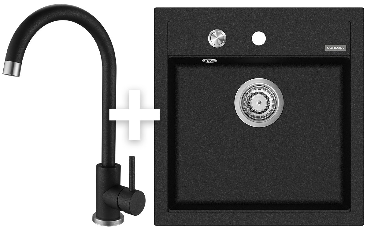SET Dřez granitový bez odkapu DG00c50bc + Baterie dřezová granit BDG3234bc