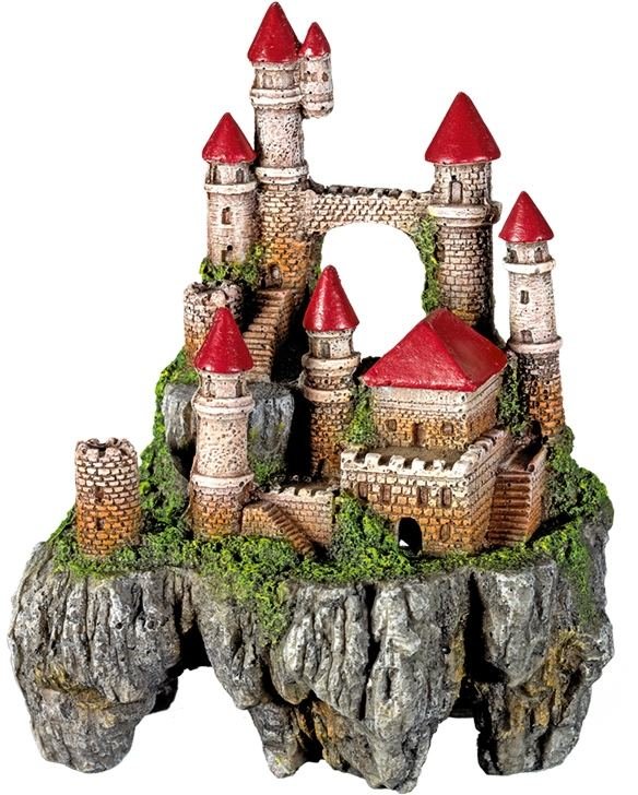 Akvarijní dekorace hrad na skále německé značky Nobby. Velikost 12,5 x 9,8 x 16 cm. Vyrobeno z polyresinu (syntetické pryskyřice) Velmi detailní provedení. Dekorace je neutrální na biologické rovnováhy, netoxické. UPOZORNĚNÍ: Před prvním použitím v akváriu opláchněte vlažnou vodou (bez čisticích prostředků!). Mírné barevné změny jsou možné po delším používání.