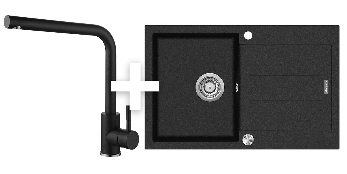 SET Dřez granitový s odkapem DG10C45bc + Baterie dřezová granit BDG4227bc