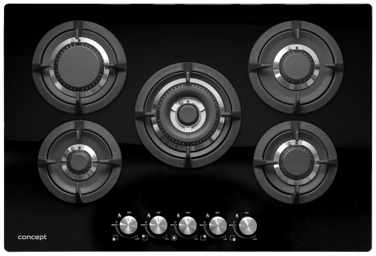 Plynová deska 75 cm Concept PDV7575bc BLACK černé sklo Design WOK hořák Kvalitní zpracování Design Plynová deska PDV7575bc z linie BLACK je zpracována z kvalitního tvrzeného skla a...