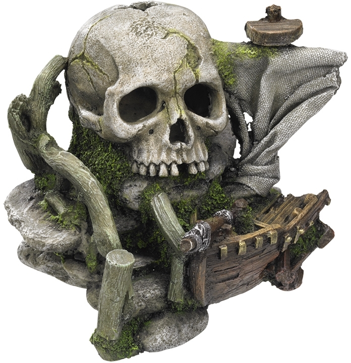 Dekorace do akvária německé značky Nobby. Lebka s vrakem. Velikost 16,2 x 14,2 x 14,3 cm. Vyrobeno z polyresinu (syntetické pryskyřice) Velmi detailní provedení. Netoxické - neutrální na biologické rovnováhy. Vhodné pro sladkou nebo slanou vodu. UPOZORNĚNÍ: Před prvním použitím v akváriu opláchněte vlažnou vodou (bez čisticích prostředků!). Mírné barevné změny jsou možné po delším používání.