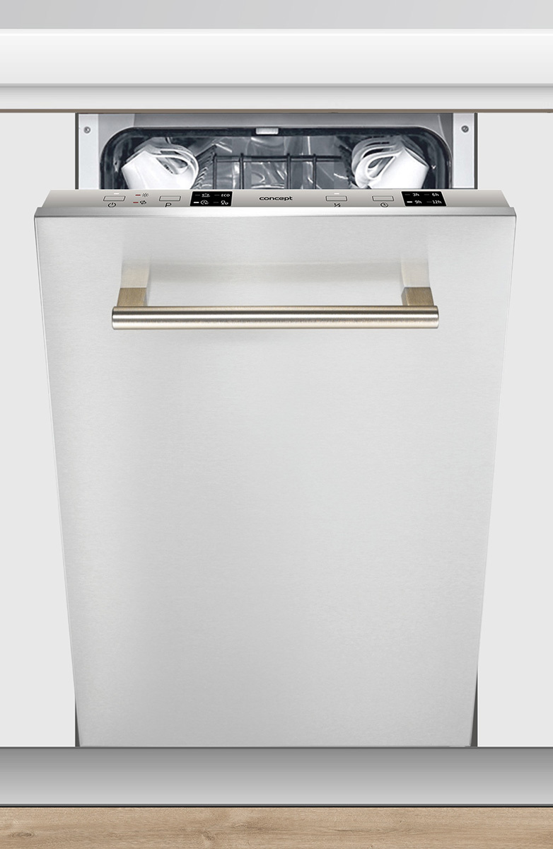 Vestavná myčka nádobí Concept MNV4245 Dávkovač typu SLIDE Odložený start mytí 9 sad nádobí Dávkovač typu SLIDE Znáte to, naplnili jste myčku, zapnuli a výsledek po domytí...