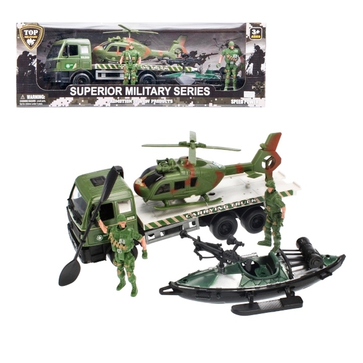 Sada obsahuje: vojenské auto, vrtulník, člun, 2 figurky a vojáka. Rozměry produktu [cm]: 30x13x9, rozměry balení [cm]: 45x16x19, Výrobek je určen pro děti ve věku od 3 let. przeczytaj całość
