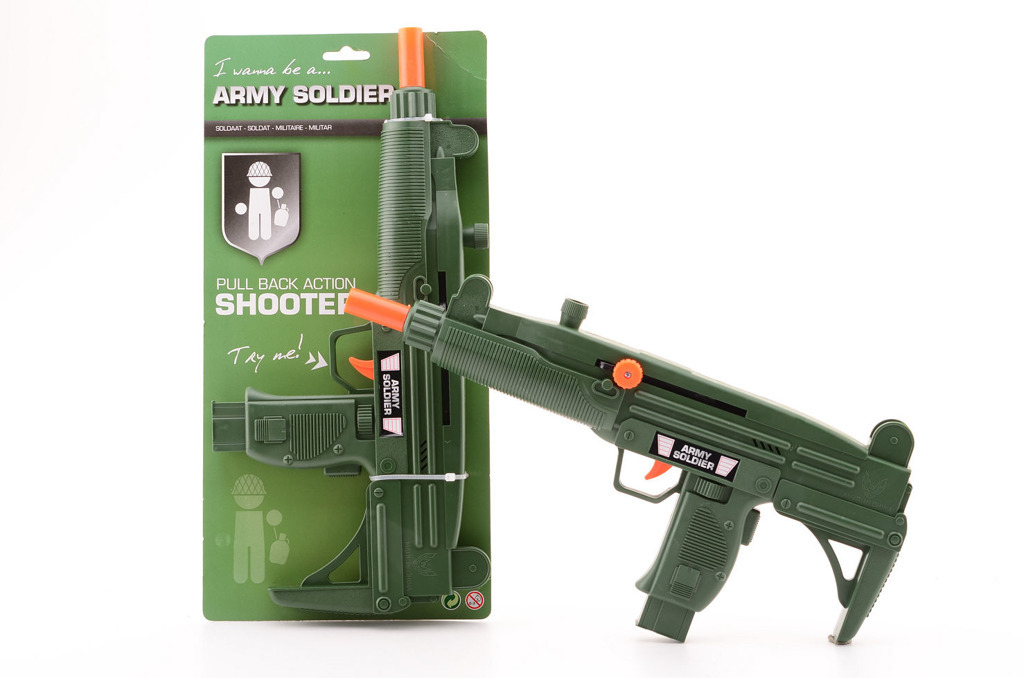 Vojenský samopal zelený s funkcí pull-back. Velikost samopalu 40 cm. przeczytaj całość
