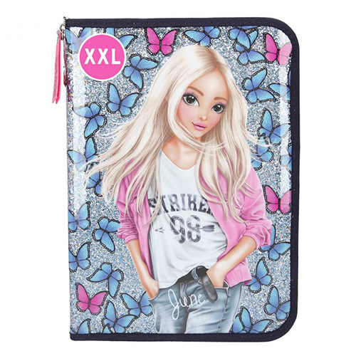 Velký penál s výbavou Top Model, Modré flitry, s motýly, June, 0411174_A