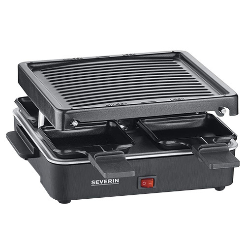 Raclette gril Severin, RG 2370, kompaktní raclette gril, 4 pánvičky, vroubkovaný nepřilnavý povrch, 600 W