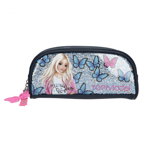 Jednoduchý penál Top Model, Modré flitry, s motýly, June, 0411173_A