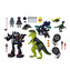 T-Rex s figurkou bojovníka je připraven vám představit svoji bojovou sílu. Jako obávaný predátor je vybaven brněním, aby obstál v souboji s robotem. Děti si s nimi mohou přehrát příběh, kdy byl dino osvobozen od Dino Rock, a se svým kamarádem Ianem bojuje proti zrádným strojům.Sada obsahuje: dvě...