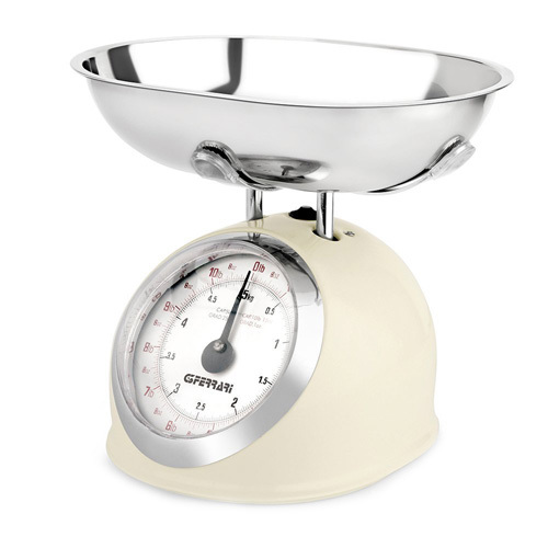 Kuchyňská váha G3Ferrari, G2000300 CR, retro styl, přesnost 25 gr/5 kg, funkce tary, kovová miska