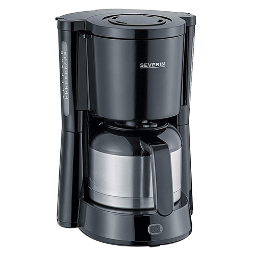 Vlastnosti:- výkon: max. 1000 W- kapacita: až 8 šálků (1 litr)- barva: nerezová ocel/černá- filtrační vložka vhodná do myčky- velikost filtru 1 x 4- tlačítko zapnutí / vypnutí s kontrolkou- automatické vypnutí- integrovaný úložný prostor na kabel- termo konvice s praktickým ovládáním jednou rukou...