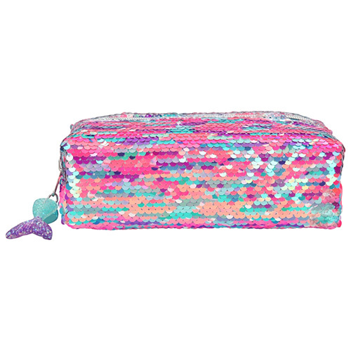 Jednoduchý penál Top Model, Tyrkysovo-oranžovo-růžovo-fialové flitry, 21,5 x 9 x 10 cm