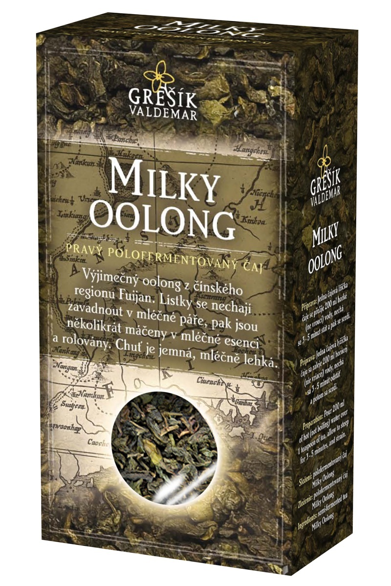 Wyjątkowy oolong z chińskiego regionu Fujian. Listki są poddawane więdnięciu w parze mlecznej, następnie kilkakrotnie maczane w esencji mlecznej i zwijane. Smak jest delikatny, lekko mleczny. Skład: półfermentowana herbata Milky Oolong
