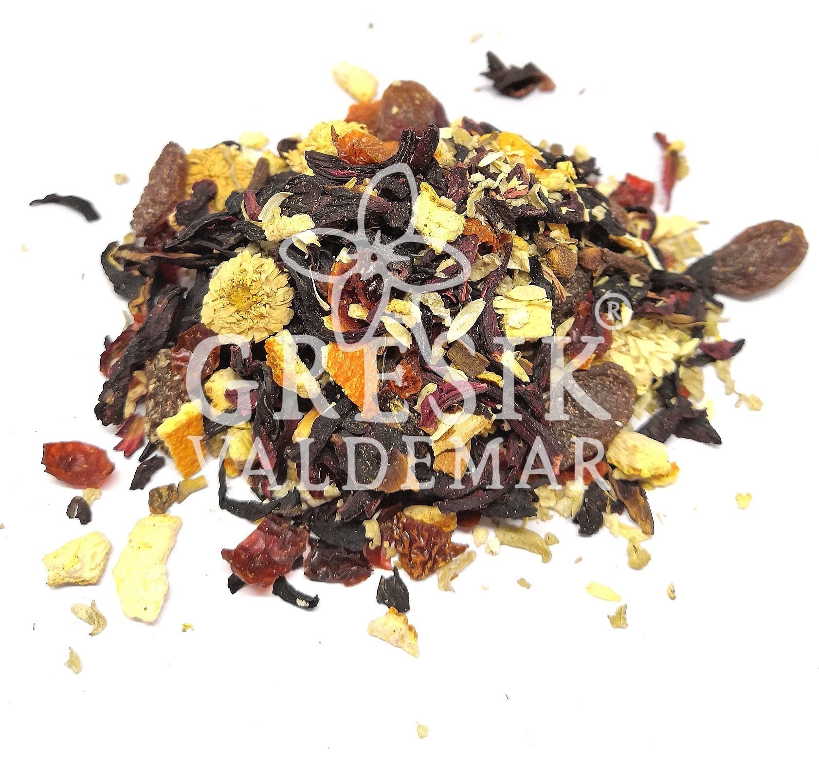 Stačí první pohled a přivonění a vánoční atmosféra je tu! Neopakovatelné aroma skořice a hřebíčku spolu s plnou pomerančovou chutí. Čaj chutná teplý i studený.Složení: ibišek súd. květ, rozinky, šípek, pomerančová kůra 11 %, přírodní aroma, heřmánek římský květ, skořice čín. kůra 2,4 %, hřebíček...