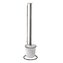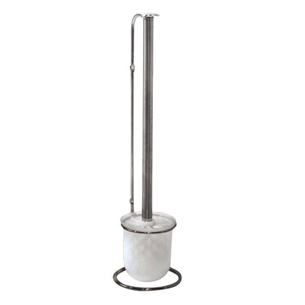 WC souprava na toaletu, štětka s kovovým držadlem v bílé plastové nádobě na kovovém stojánku. Materiál - plast, pochromovaný kov. Rozměry stojanu - 49,7 x 10,5 cm. Rozměry štětky - 47 x 7,8 cm. Barva - modrá, bílá, stříbrná przeczytaj całość