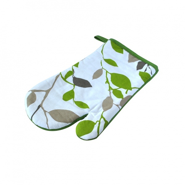 Kuchyňská chňapka - tvar rukavice je vhodná pro chycení a přenášení horkých nádob, pečících plechů z rozpálené trouby nebo na zvedání rozpálené pokličky. Motiv zelené květy. Materiál - bavlna. Rozměry - 26,5 x 17 cm. przeczytaj całość