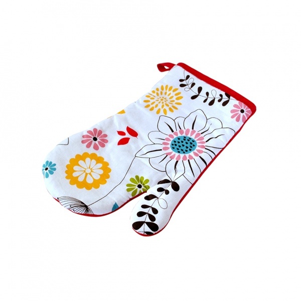 Kuchyňská chňapka - tvar rukavice je vhodná pro chycení a přenášení horkých nádob, pečících plechů z rozpálené trouby nebo na zvedání rozpálené pokličky. Motiv červené květy. Materiál - bavlna. Rozměry - 26,5 x 17 cm. przeczytaj całość