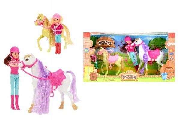 Kůň + panenka žokejka 4ks plast v krabici 48x26x12cm