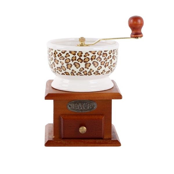 Ruční mlýnek s moderním motivem kávy. Tělo je vyrobeno ze dřeva stejně jako ergonomická rukojeť, mlecí mechanismus je z nerezových slitin. Lze nastavovat libovolnou hrubost mletí. Mlýnek je vhodný také jako dekorace. Tento model má praktický šuplíček do kterého namletá káva padá. Materiál - porcelán, dřevo, nerez. Šířka - 12 cm, výška 17 cm.