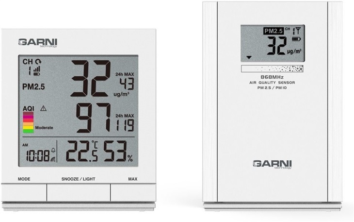 Měřič kvality vzduchu GARNI 204 OneCare je určen pro vnitřní použití. Měří a zobrazuje koncentraci pevných částic PM2.5 a PM10 naměřenou čidlem GARNI 104Q (jedno bezdrátové čidlo je součástí balení), teplotu a relativní vlhkost. Pro měření pevných částic (PM) je použito švýcarské čidlo SENSIRION przeczytaj całość