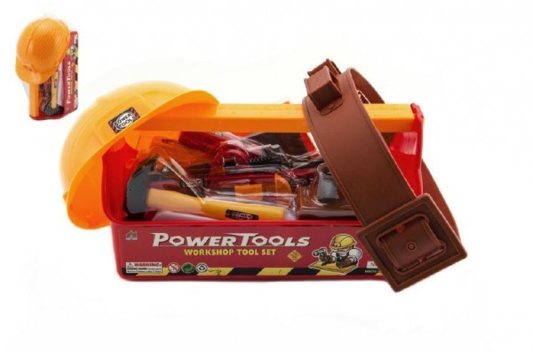 Sada nářadí s opaskem + helma/přilba 10ks plast 28cm v kufříku v síťce