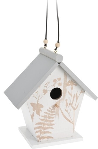 Dekorativní ptačí budka na zavěšení s šedou střechou a květinovým motivem.Materiál: MDF deskaRozměry:výška 22 cmšířka 20,5 cmhloubka 11,5 cm przeczytaj całość