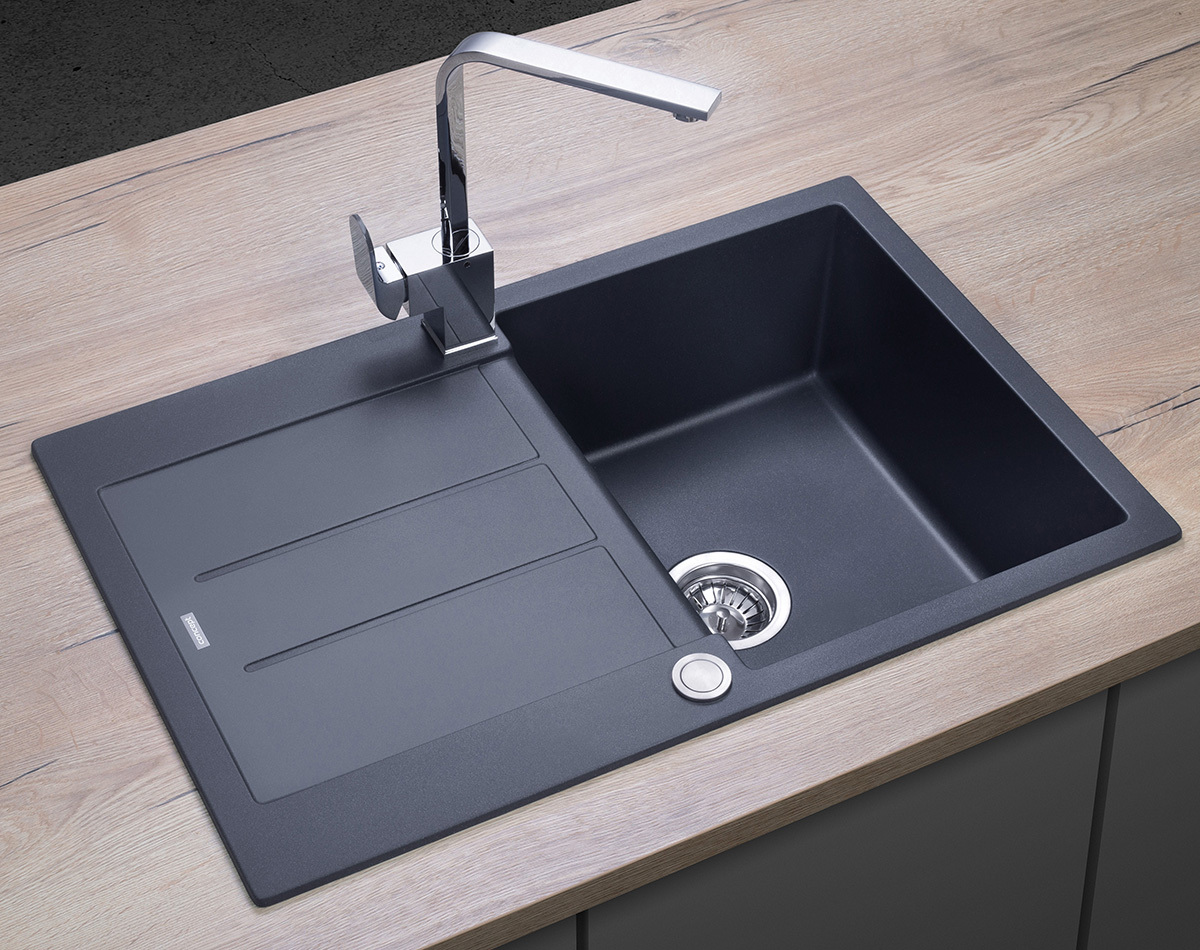 DG10C45dg Dřez granitový s odkapem Cubis TMAVĚ ŠEDÝ