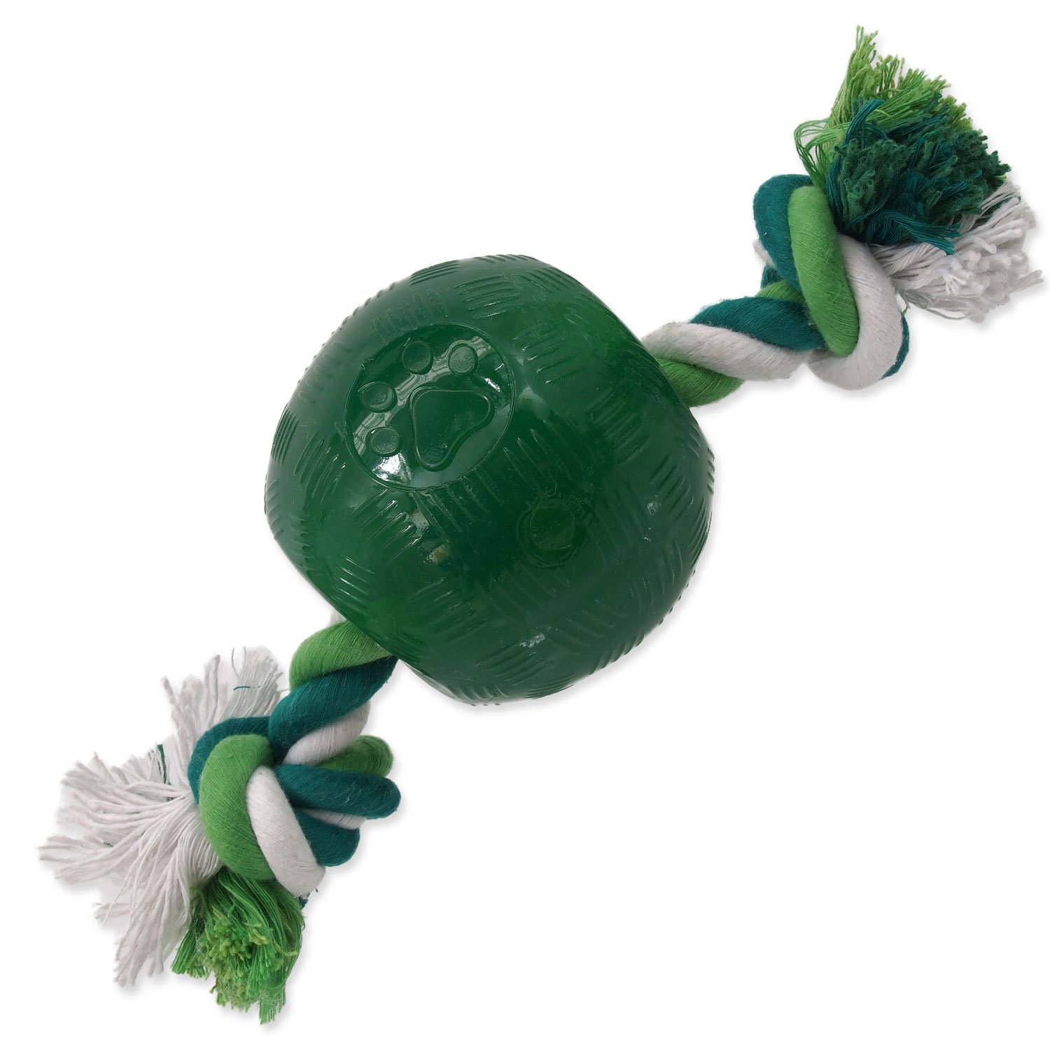 Hračka DOG FANTASY Strong Mint míček gumový s provazem zelený 9,5 cm