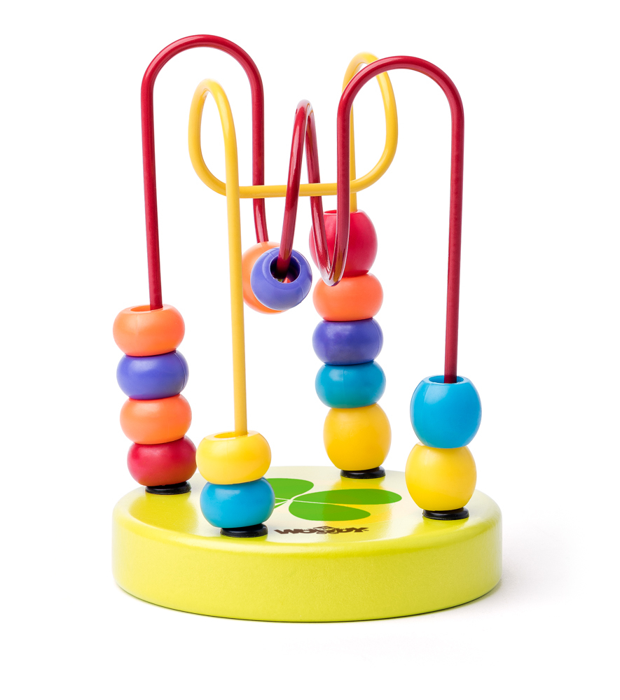 Motorická hračka pro nejmenší. Dítě posouvá korálky upevněné na silné drátěné konstrukci. Věk: 2+ | Rozměr: 9 x 12,5 cm | przeczytaj całość