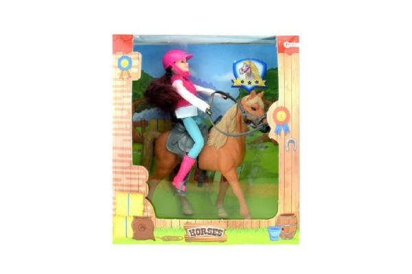 Panenka žokejka s koňem plast v krabici 26x30x11cm