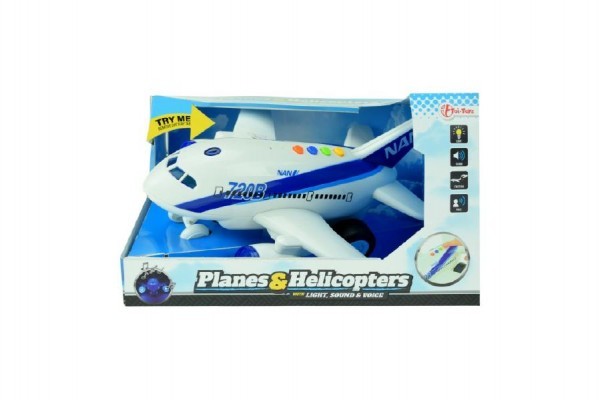 Letadlo plast 26cm na baterie se zvukem se světlem na setrvačník v krabici 27x16x19cm