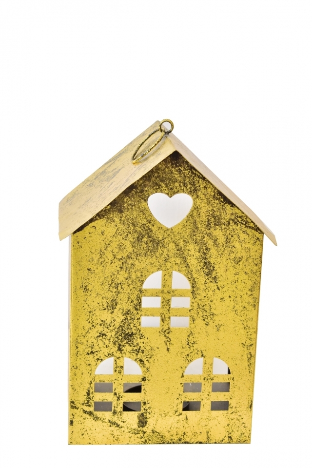 Kovový domeček na čajovou svíčku, zlatý, 33,5x22,5x16,5 cm