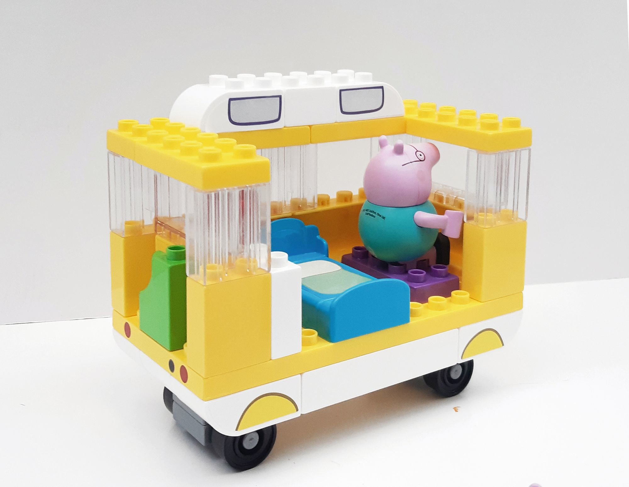 Stavebnice PlayBIG Bloxx s oblíbeným prasátkem Pepou. Součástí 2 figurky, 52 dílů. Obytný vůz z hracích kostek a koleček s postelí a vařičem. Součástí i kulatý stůl se židličkami, konvičkou a dalším příslušenstvím. Kompatibilní s jinými známými kostičkami. Rozměry: 20 x 22 x 17 cm. przeczytaj całość