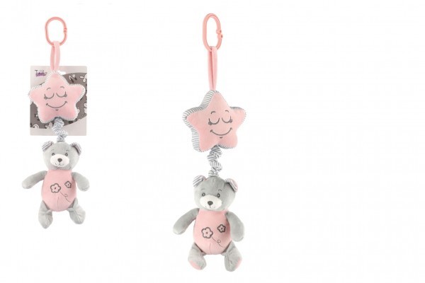 Medvěd s hvězdou plyš závěs na postýlku/kočárek nat. hrací strojek 35cm růžový na kartě v sáčku 0+