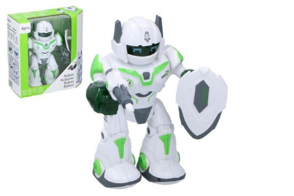 Robot chodící a otáčecí s doplňky 20cm na baterie se zvukem a světlem v krabici 23x24x10cm