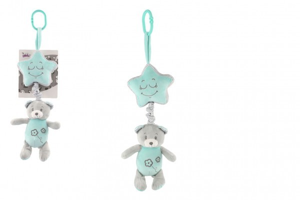 Medvěd s hvězdou plyš závěs na postýlku/kočárek nat. hrací strojek 35cm zelený na kartě v sáčku 0+