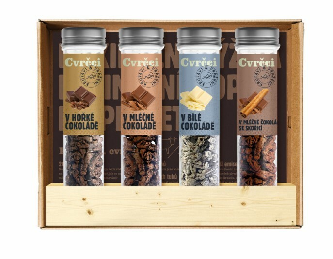 Křupaví cvrčci v mléčné čokoládě se skořicí je výživná a zábavná pochoutka, nebo jídlo budoucnosti. Vyzkoušejte jak chutnají nebo překvapte své blízké netradiční čokoládovou bonboniérou. Cvrčci jsou maximálně výživný zdroj bílkovin s minimálním dopadem na planetu. Prémiovou čokoládou jsou cvrčci obalené v ideálním poměru tak, aby stále příjemně křupali. Díky průhledným zkumavkám je pojídání cvrčků teprve zábava.