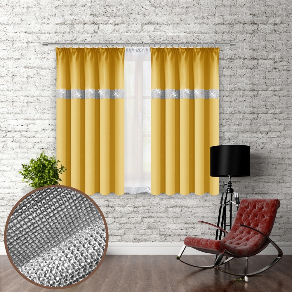 Dekorační závěs se zirkony s řasící páskou GLAM 160 mustard/hořčicová 140x160 cm (cena za 1 kus) MyBestHome