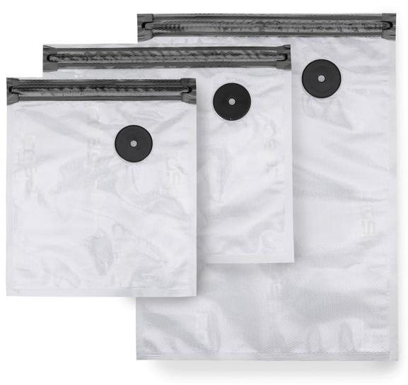 Tloušťka materiálu 150 µm: Mimořádně pevný a odolný proti roztržení – i se špičatými předměty, jako jsou kosti nebo rybí kosti. Stabilní struktura žeber pro 100% těsnost. Ochrana proti popálení mrazem. Delší trvanlivost potravin: Až 8x déle čerstvé. Možnost ohřívání v m przeczytaj całość