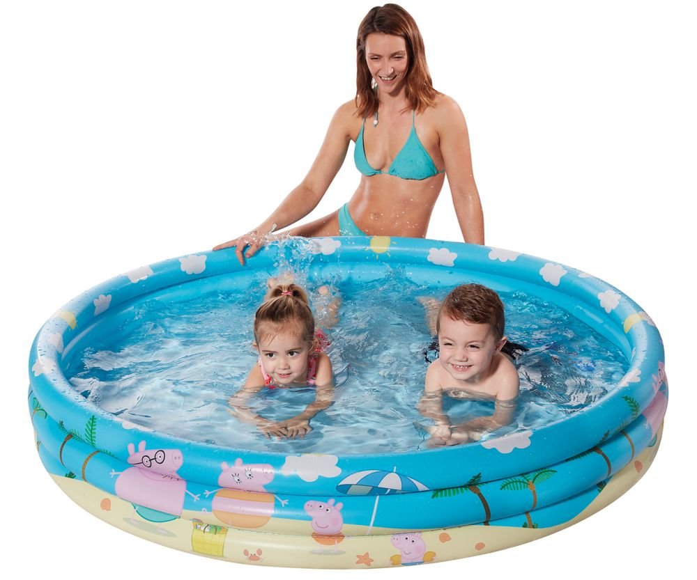 Dziecięcy basenik z motywem Peppa Pig, z 3 pierścieniami. Średnica basenu ok. 122 cm. Nadaje się dla dzieci od 3 lat. przeczytaj całość