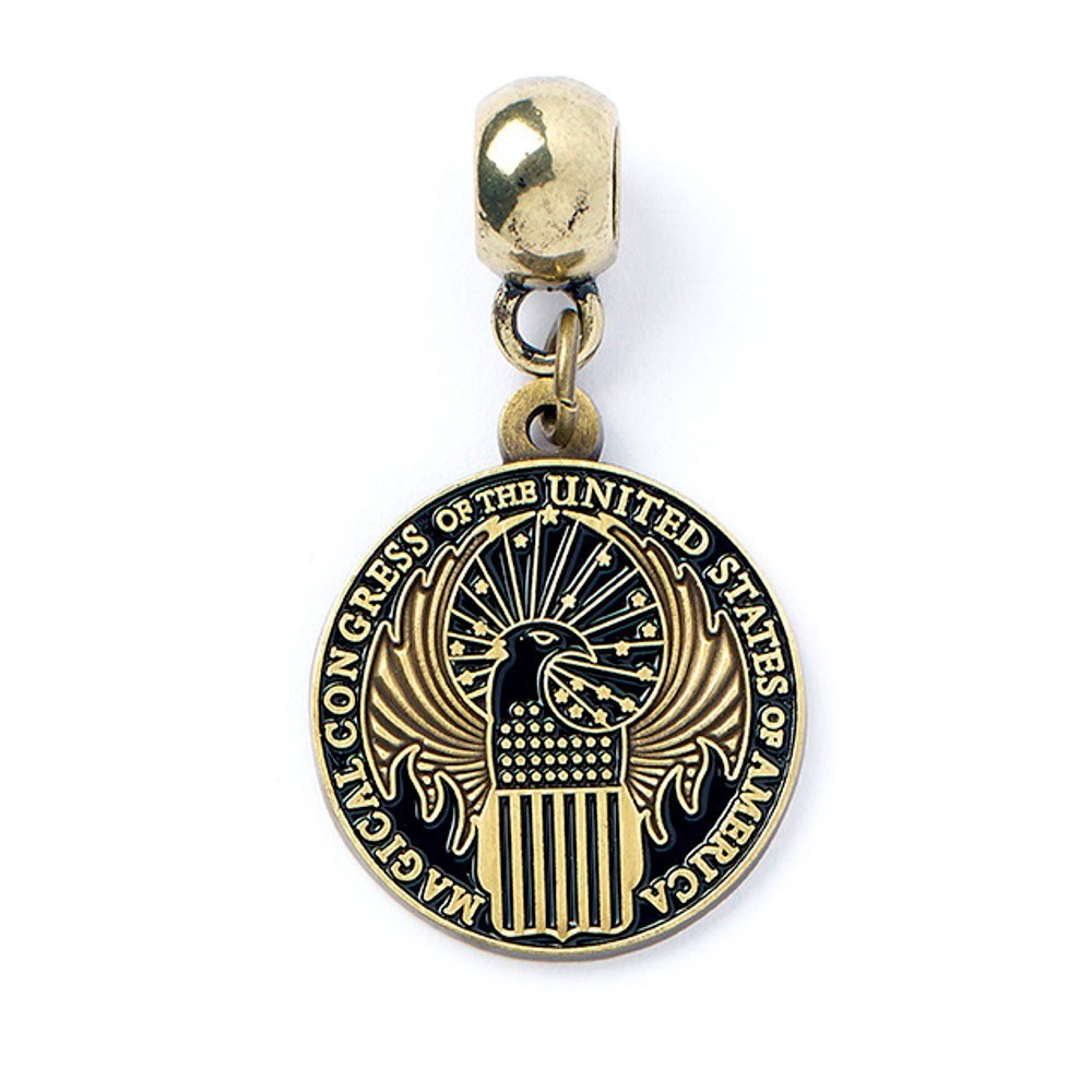 Přívěsek podle filmu Fantastická zvířata a kde je najít se znakem Magického kongresu, povrch je pokryt starožitně vypadající mosazí. przeczytaj całość