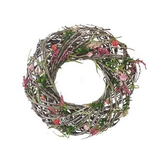Krásný jarní nadekorovaný věnec.Rozměry : průměr 35 cm, tloušťka 8,5 cm.Barva : přírodní s růžovou, zelenou.Materiál : přírodní, dekorace - plast, textil. przeczytaj całość