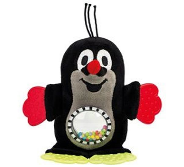 Plyšový chrastící Krteček pro nejmenší děti, s kuličkami a zrcátkem na bříšku a s kousátky na konci ručiček a nožiček, pro nejmenší děti.
