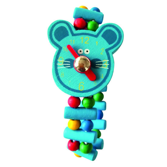 Dřevěné hodinky s motivem zvířátek - myš. Díky těmto nápaditým barevným hodinkám se děti snadno naučí poznávat čas. przeczytaj całość